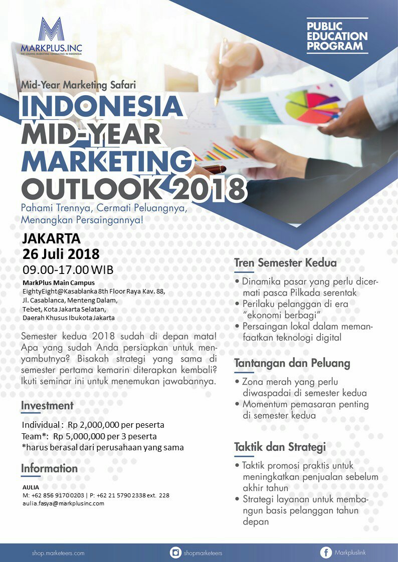 3. Tgl 24 Juli 2018 PEP Surabaya “Indonesia Marketing Outlook 2018-Mid Year Review” Jam 08.00-17.00 Lokasi Surabaya