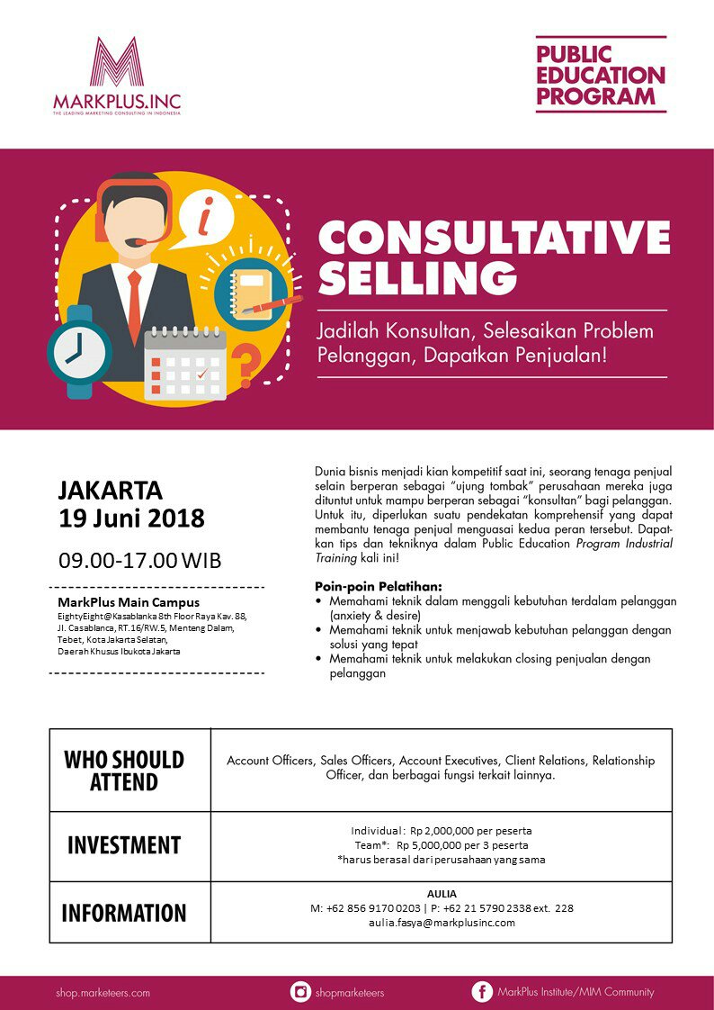 2. Tgl 19 Juli 2018 PEP Jakarta “Consultative Selling” Jam 08.00-17.00 Lokasi Jakarta