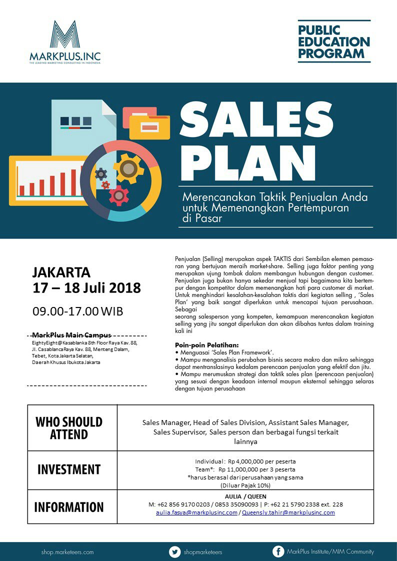 1. Tgl 17-18 Juli 2018 PEP Jakarta “Sales Plan” Jam 08.00-17.00 Lokasi Jakarta