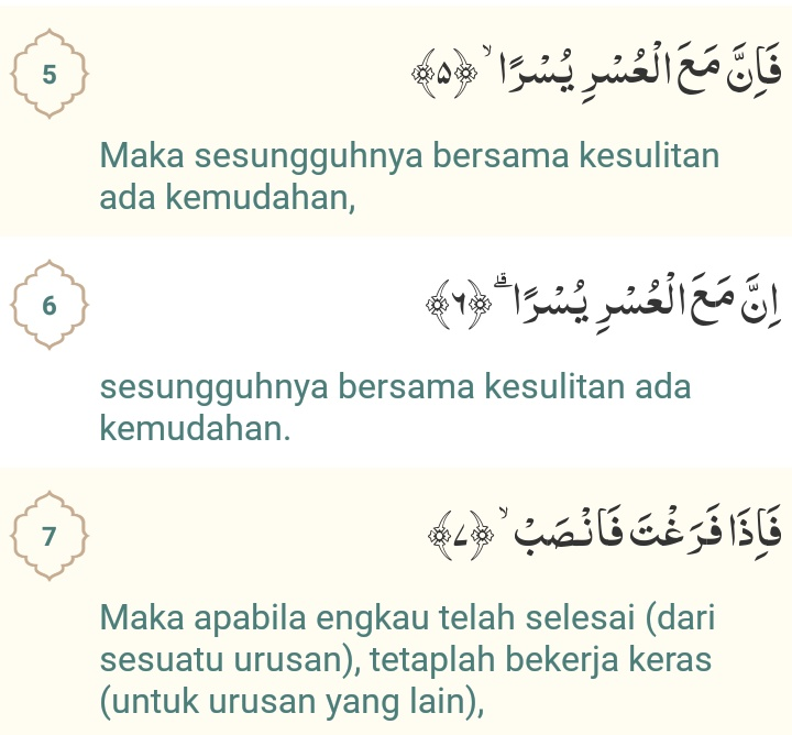 QS Al Insyirah 5-6 : Sesungguhnya dibalik kesulitan itu Ada Kemudahan.