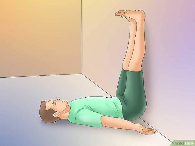 2. Lakukan seperti pada gambar ilustrasi. Apabila sdh merasa capek atau ingin variasi lainnya, boleh Angkat kaki ke atas tanpa bersandar dengan lutut ditekuk 90 derajat